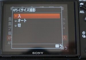 α7Rはボディ側でフルサイズとAPSCを切り替えることができるので便利だ。